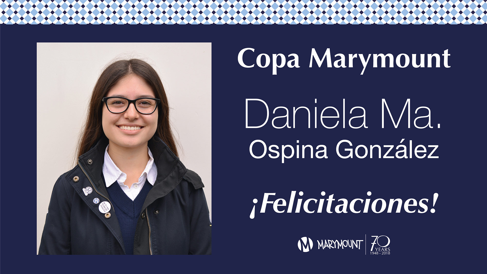 Este año las nominadas a la Copa Marymount, máximo reconocimiento que hace el colegio a una alumna en su último año escolar fueron Ma. Clara Mejía, Daniela Ospína y Juliana Vélez, y luego de la votación de las alumnas de 9° a 11° la ganadora fue Dani Ospina!!!