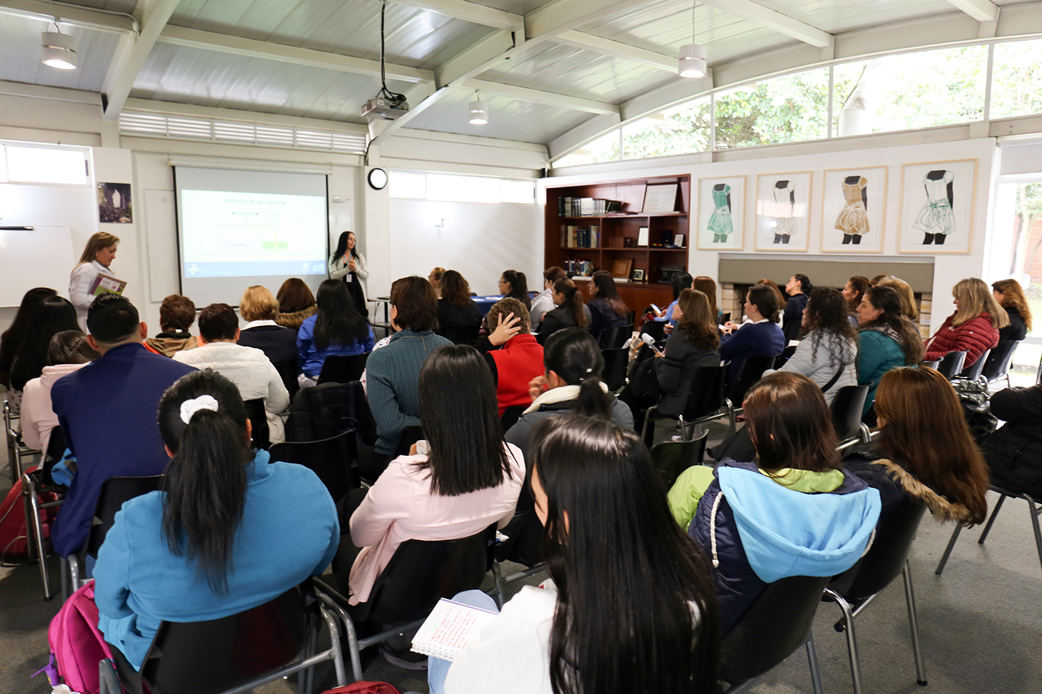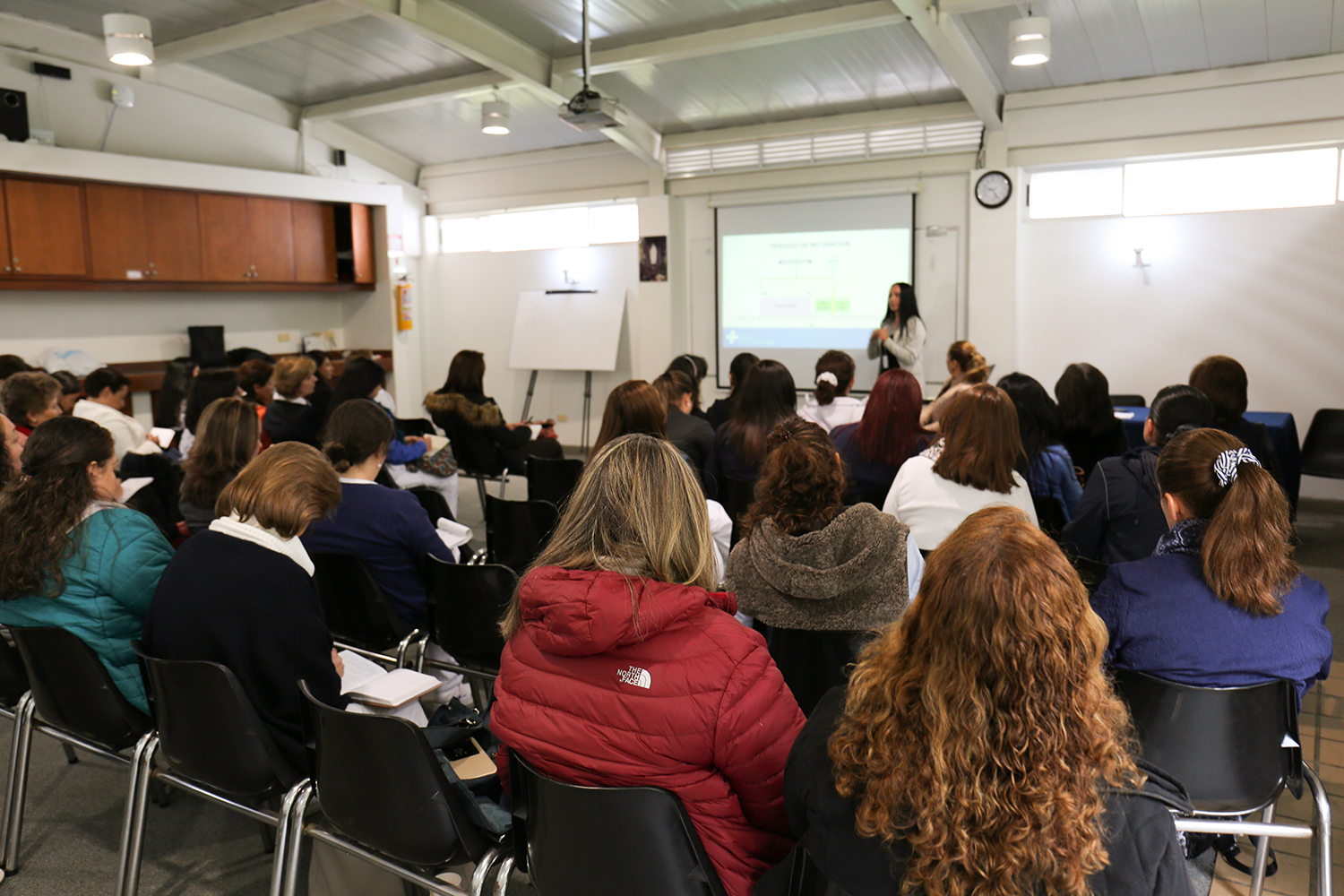 El pasado viernes 6 de abril 39 enfermeras escolares se dieron cita en el colegio para hablar de temas de interés en Salud Publica, dada la alerta por la presencia de enfermedades inmunoprevenibles que involucran a todos los niños y niñas de nuestra ciudad, especialmente por la presencia de sarampión en el país, enfermedad que Colombia ha tenido controlada desde hace varios años. El evento fue organizado por el Comité de Enfermería Escolar de la Asociación Nacional de Enfermeras de Colombia CEE-ANEC el cual es coordinado por nuestra enfermera María Clemencia Ferro.